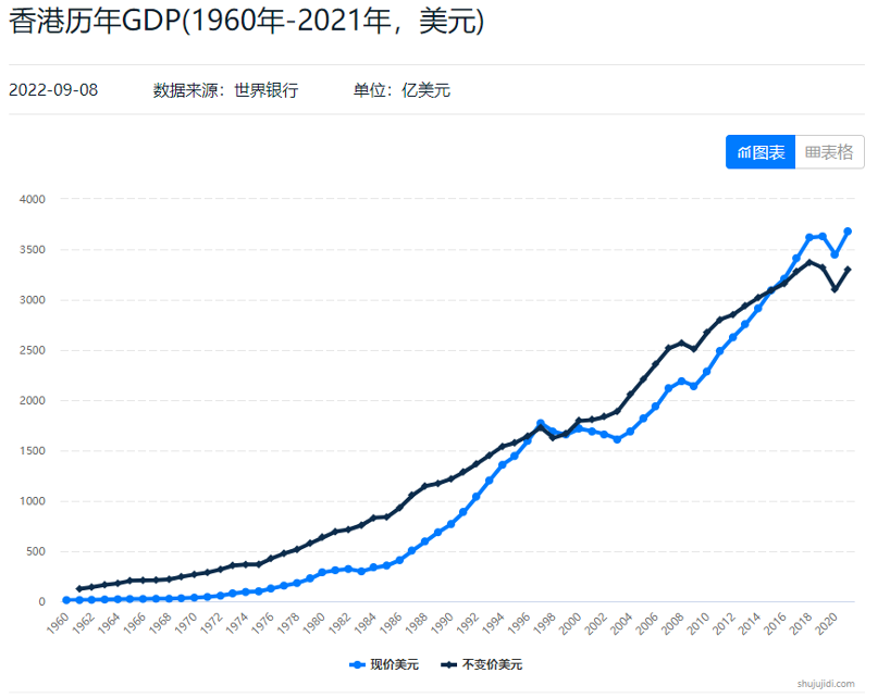 香港的GDP也是如此。1976年,香港242億GDP反超上海的205億,當(dāng)時(shí)北京與蘇州的GDP還沒(méi)過(guò)百億。